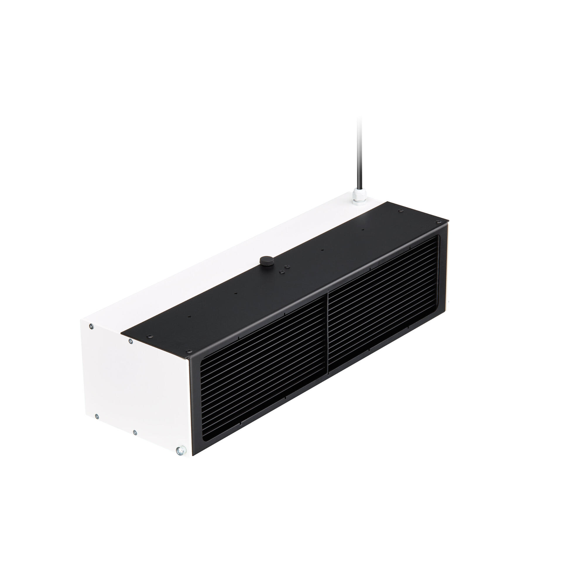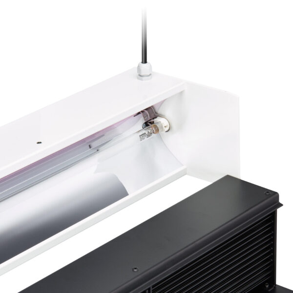 | Đặc điểm kỹ thuật | • IP20, IK02, Class I • Khử trùng không khí trong không gian • Kích thước: 553 x 185 x 140 mm • Màu sắc: trắng và đen |